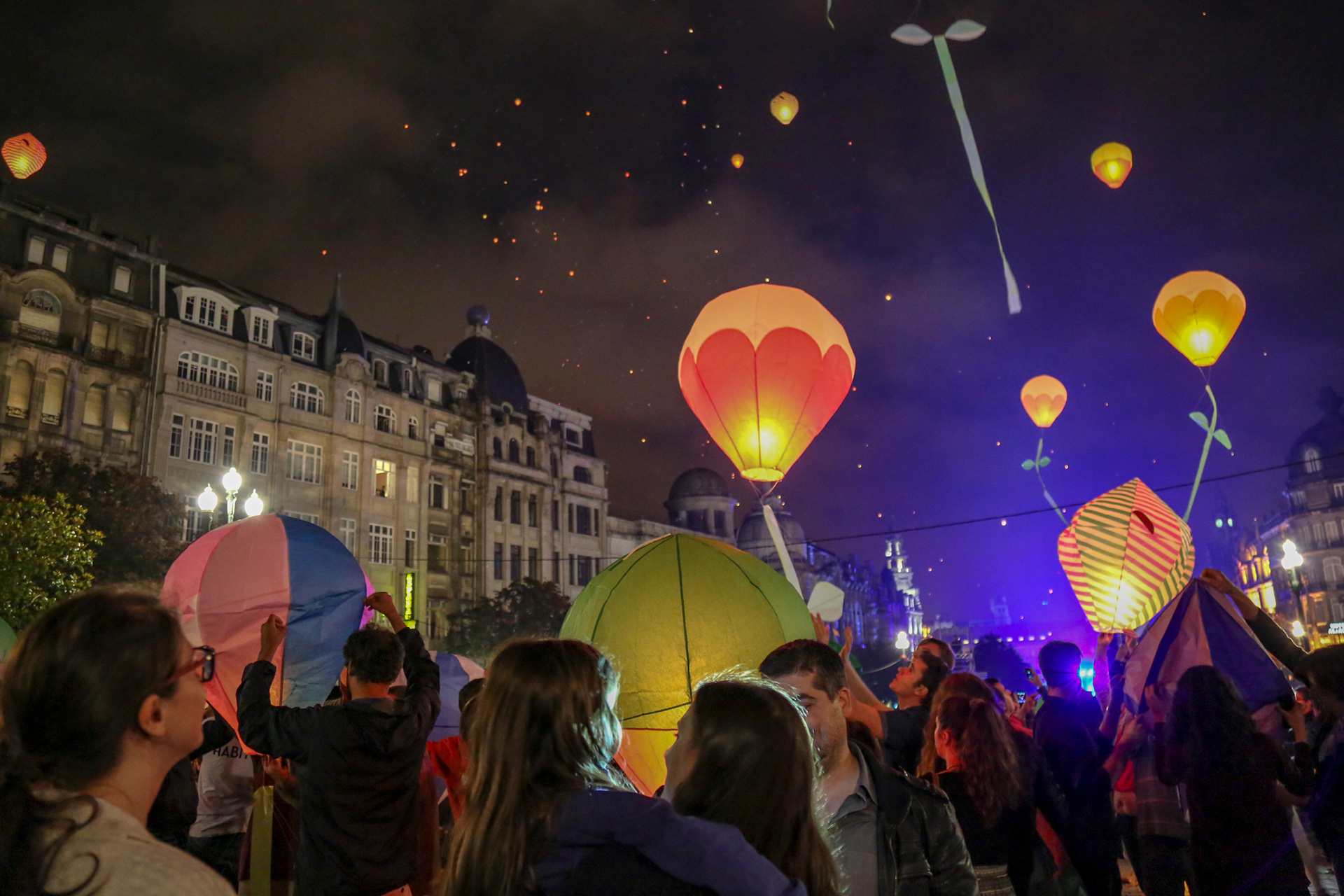 Lançamento de balões de S.João, na avenida dos Aliados. Porto, 06/2016
